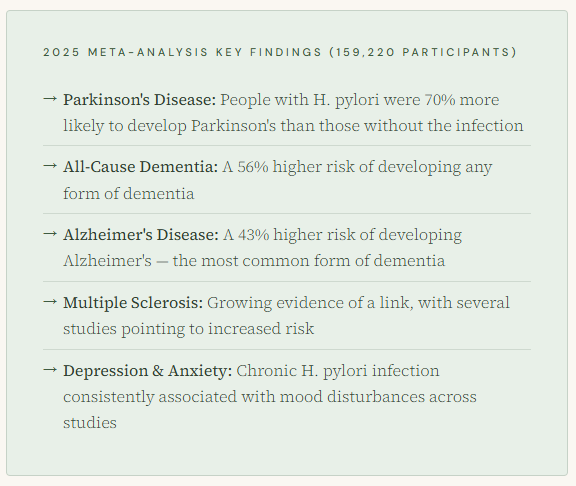 H. pylori has been living inside humans for so long that most of us have stopped thinking of it as a threat. But the evidence building up in research labs around the world tells a different story. This bacteria doesn’t just sit quietly in your stomach — it tugs on the invisible threads connecting your gut to your brain, quietly raising your risk of depression, cognitive decline, and even Alzheimer’s and Parkinson’s disease.